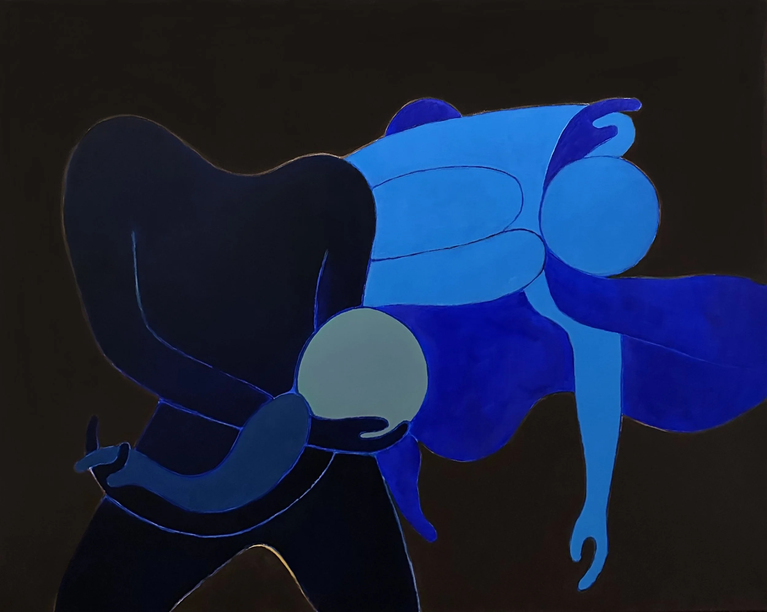 In this painting, I depict a survivor holding their deceased lover in war. One hand supports the lover’s head, caught in an irreversible stillness and despair.